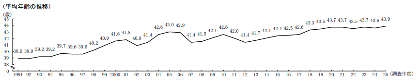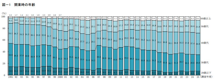 なお、同データにおける新規開業者の平均年齢は年々上がっており、2025年には43.9歳であることがわかります。