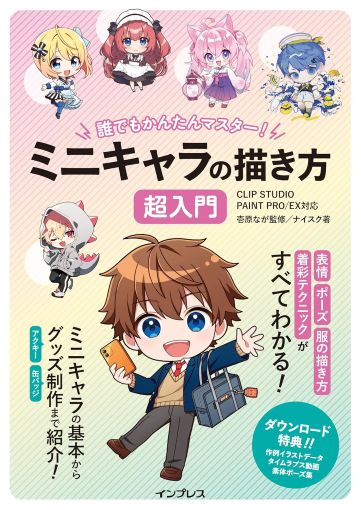 通常の頭身をどのように縮めればかわいく見えるのか、その黄金比率を学べます。グッズ制作やLINEスタンプなど、キャラクターグッズを作りたい方にも役立つ一冊です。
